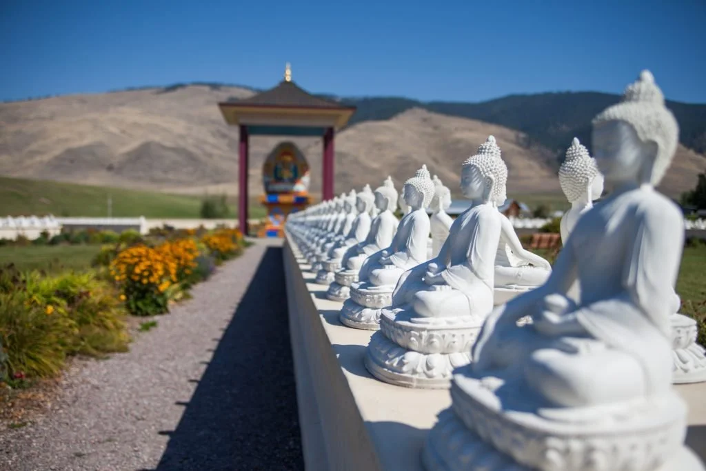 Located in Arlee, the Garden of One Thousand Buddhas is lined with statues and arranged in an eight-spoked wheel pattern called a Dharma Wheel. Photo via Destination Missoula.